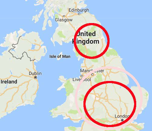 - Newcastle, Middlesbrough, Sunderland and Durham